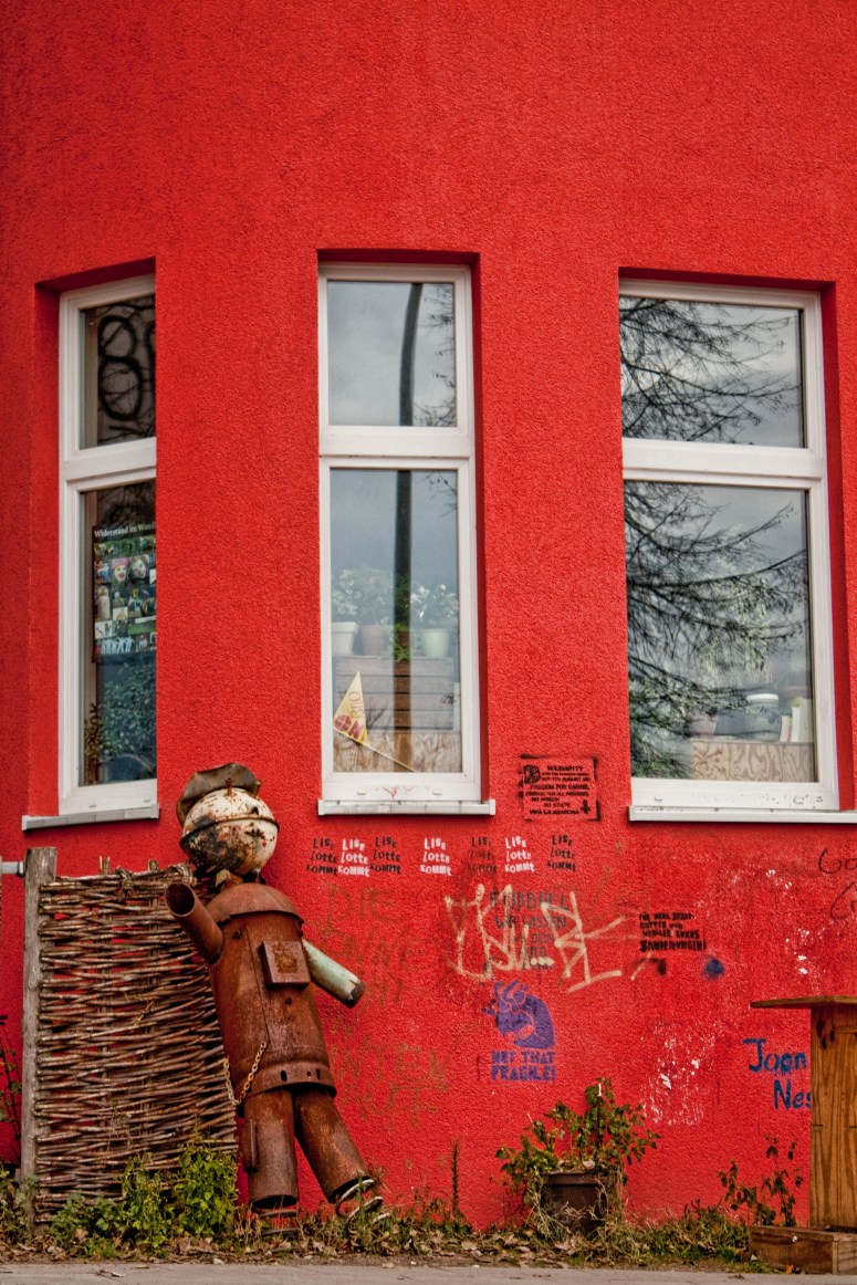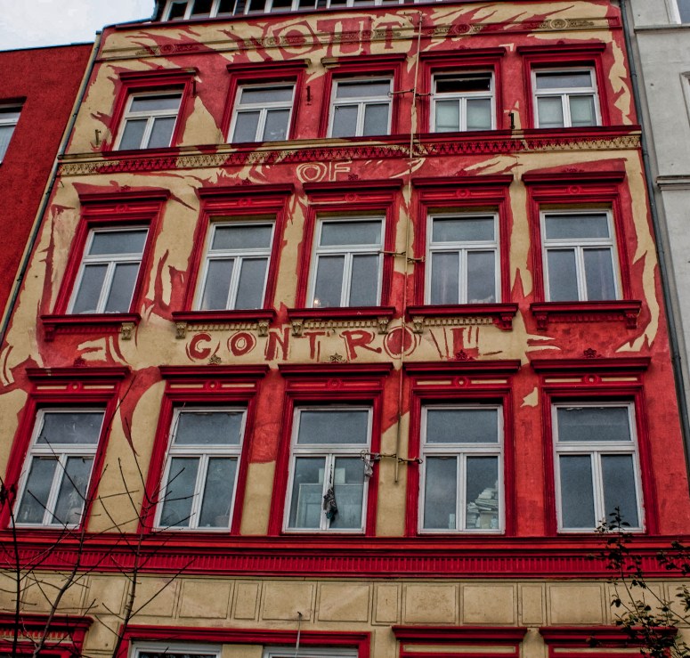 This little robot dude was standing outside a building near the Landungsbrucken in Hamburg.“Out of Control” Building near the FischmarktThis very cool graffiti was in a parking lot of a Seafood Restaurant near the harbor.