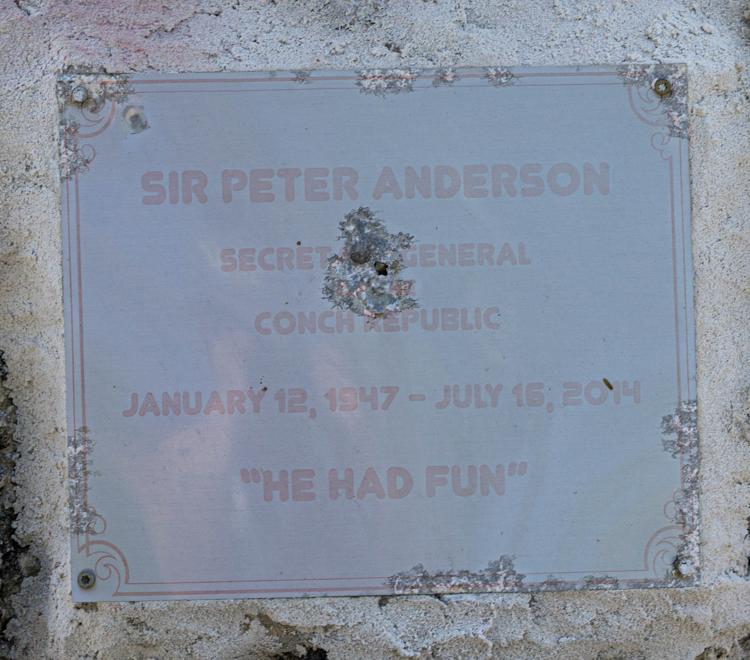 A giant Florida Conch marks the grave of Sir Peter Anderson, Secretary General of The Conch Republic. Sir Peter was one of those colorful people that made Duval Street so much fun.