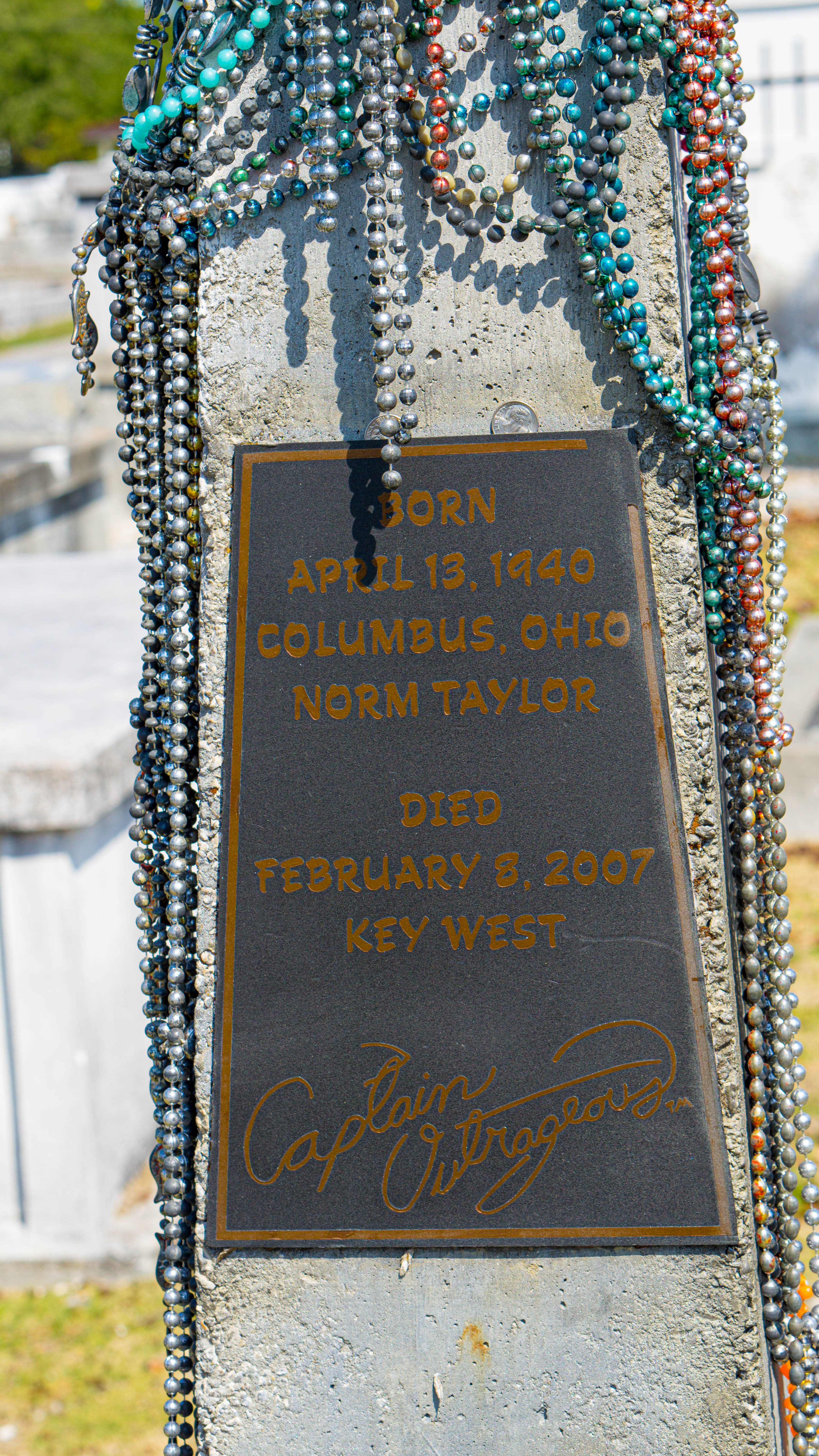 Visit the grave of Norm Taylor aka Captain Outrageous. He legally changed his name to run as mayor of Key West. Visitors to the gravesite often leave offerings of Mardi Gras beads to let him know that he is remembered.