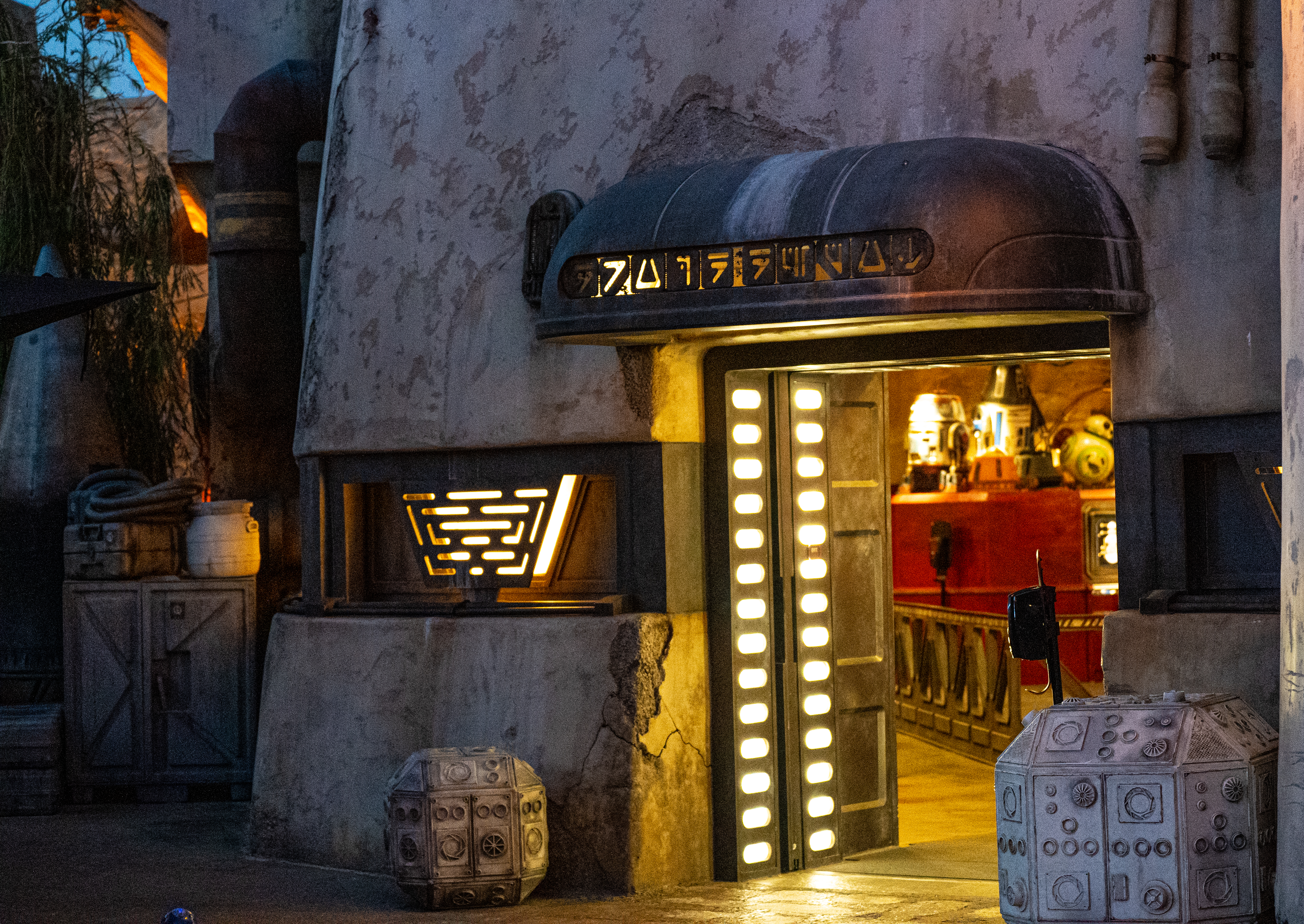 One of my favorite Easter eggs is this transport parked on top Cookie’s restaurant. The 3 cargo containers are labelled with the year of the Original Trilogy’s release. “77” for Star Wars: A New Hope, “80” for The Empire Empire Strikes Back and “83” for Return of The Jedi”. Keep your eyes peeled for even more hidden details.