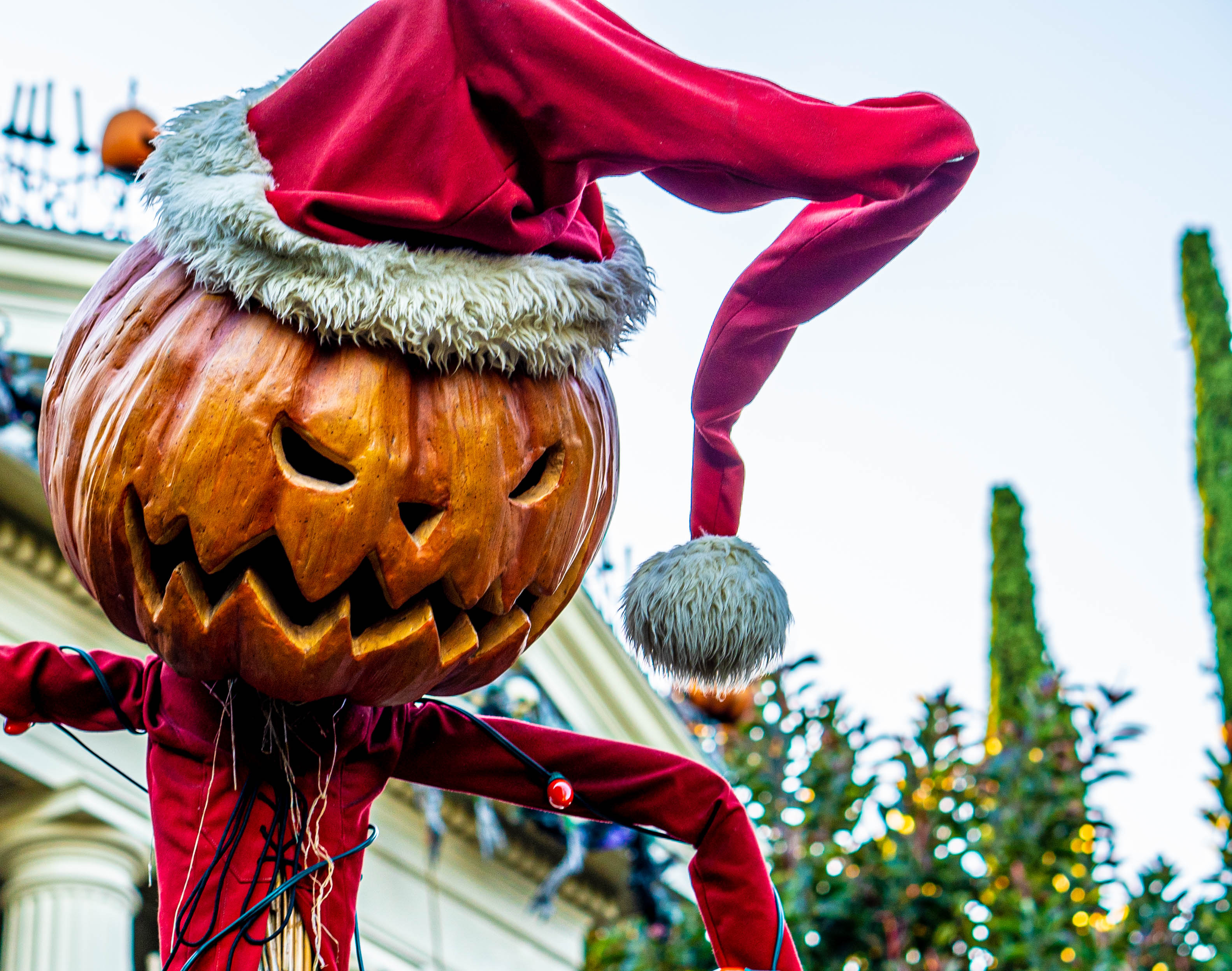 Where can you find the perfect mix of Halloween and Christmas? Look no further than Disneyland’s Haunted Mansion. The old New Orleans Square attraction gets a holiday overlay beginning in September and running through the Holidays.