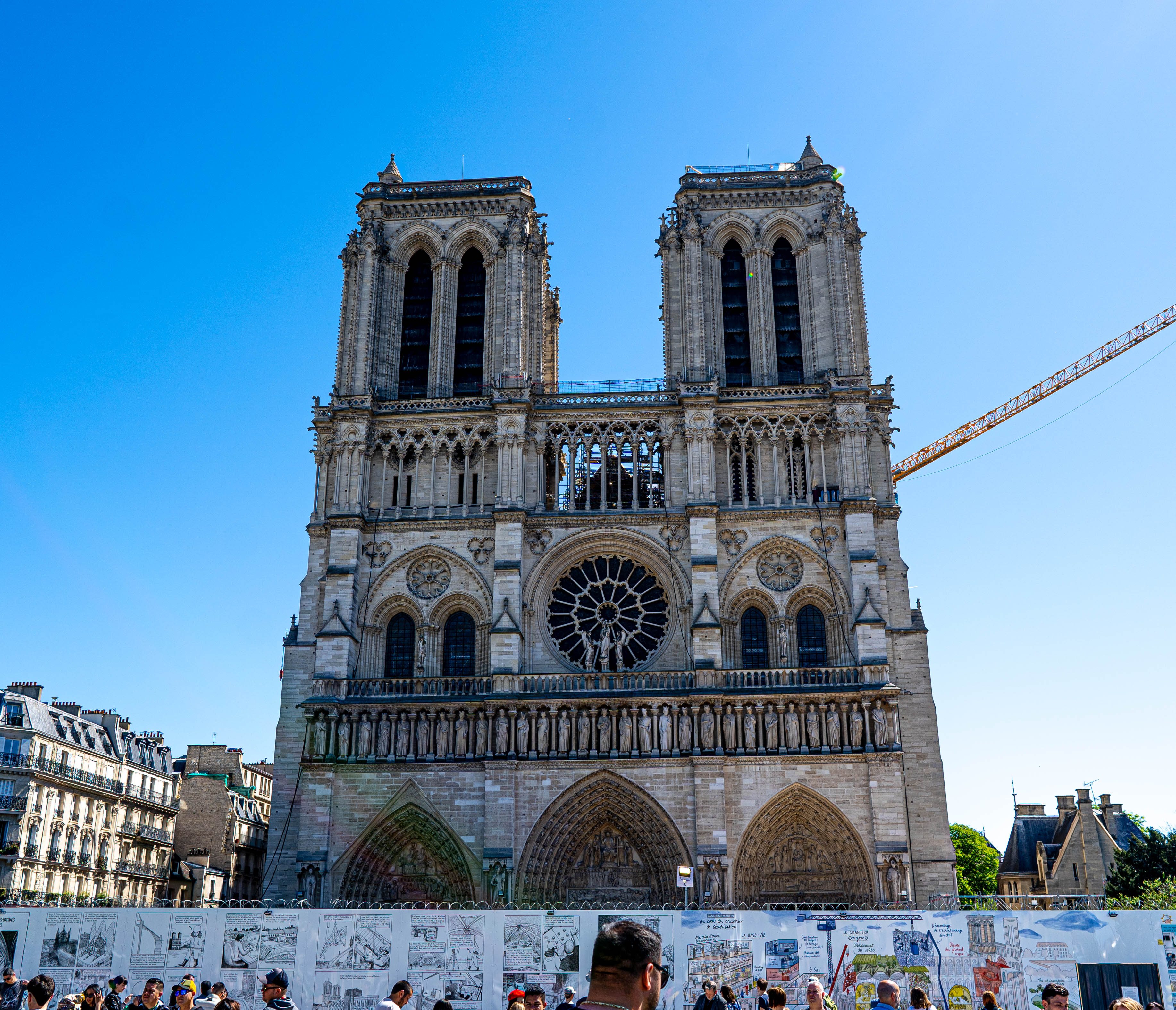 In April of 2019, the roof of Notre-Dame caught fire and burned for 15 hours. The Cathedral will be restored to its former glory and is slated to re-open to the public in 2024.