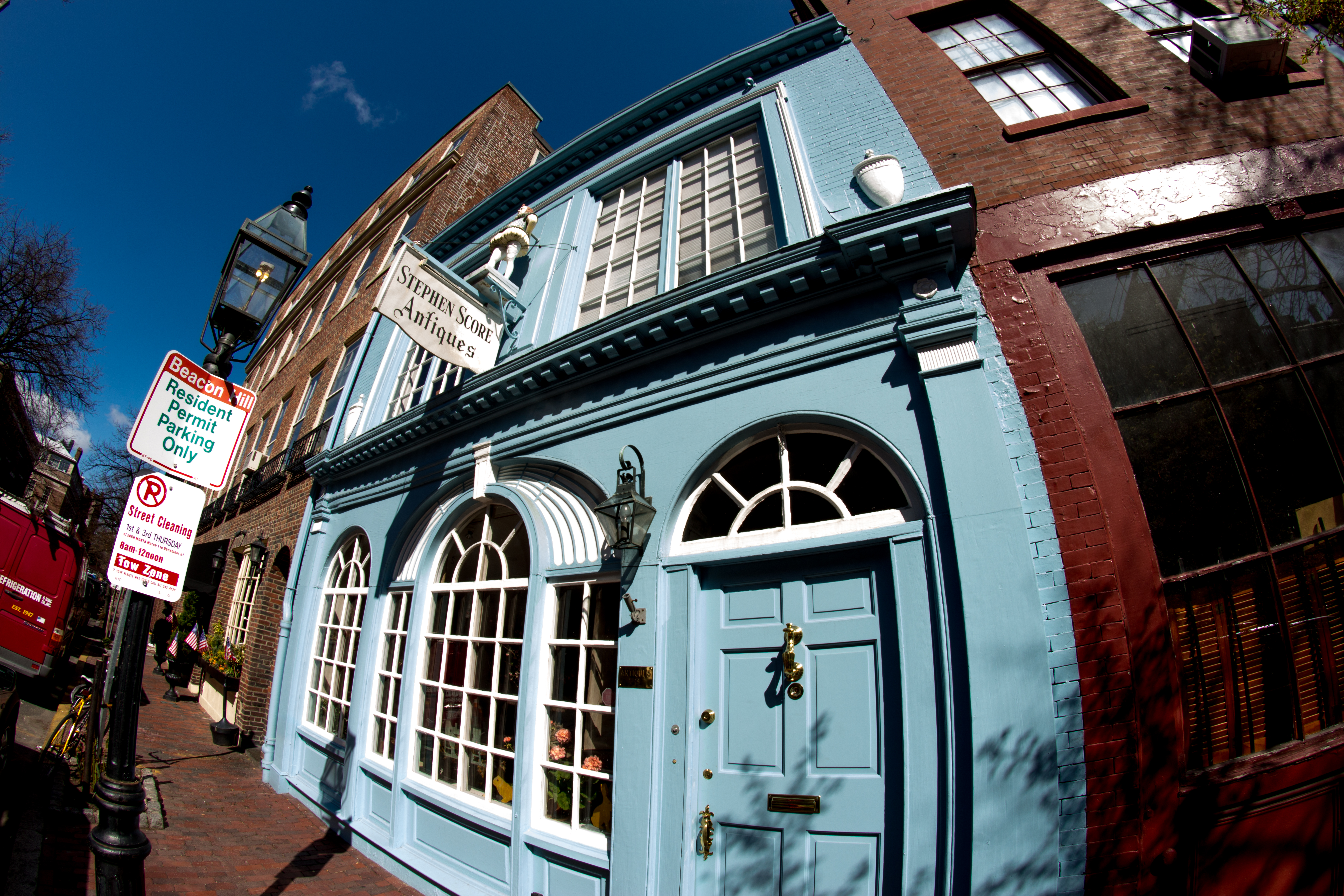 Stephen Score Antiques is nestled among 18th and 19th century buildings in the Back Bay. The vivid blue paint and the French Clown standing guard above the sign welcome you to a gallery full of antiques and fine arts. Previous owner, Israel Sack installed many of the period arcitectural details found throughout the gallery. Many were taken from an old mansion in Marblehead.