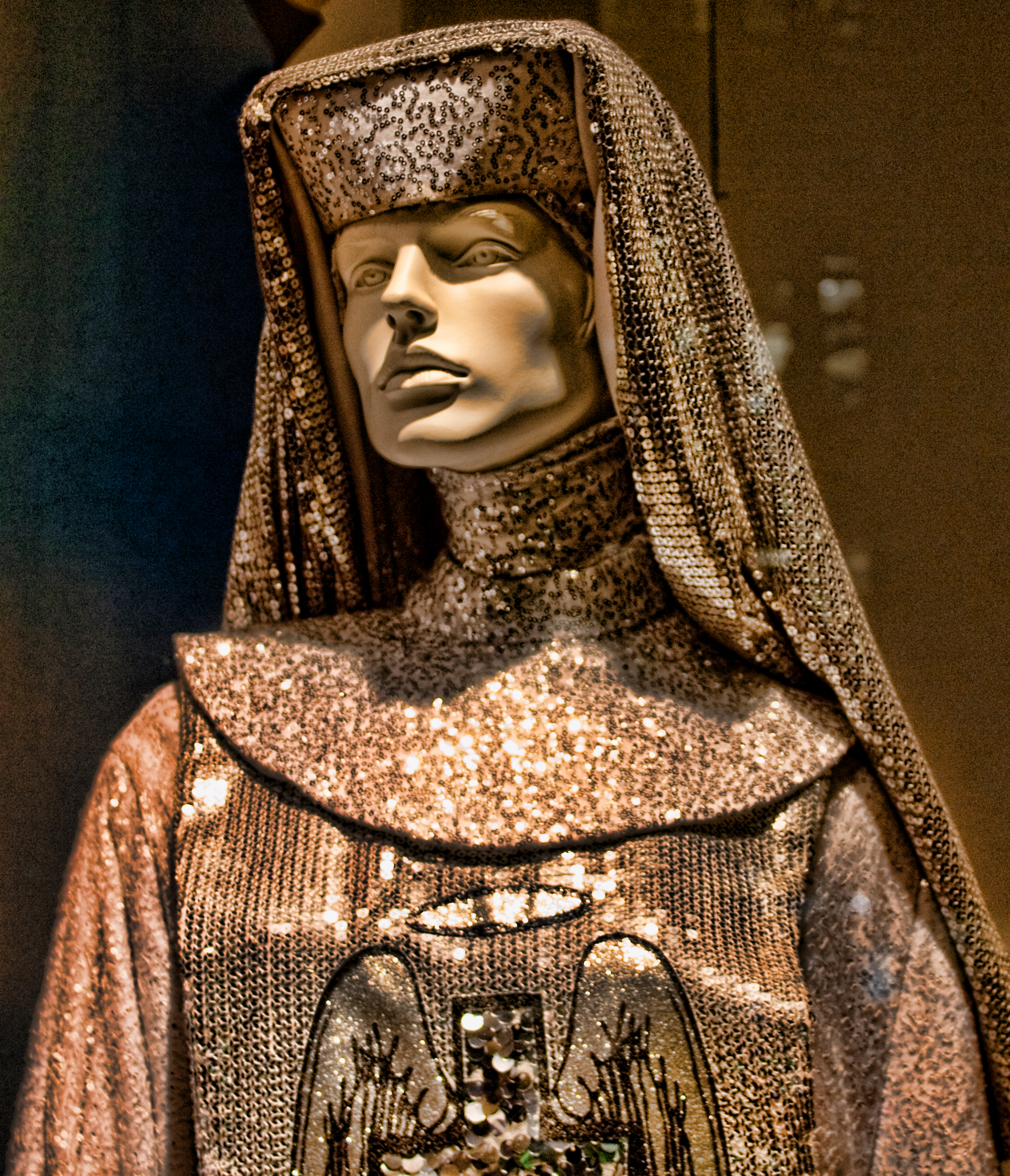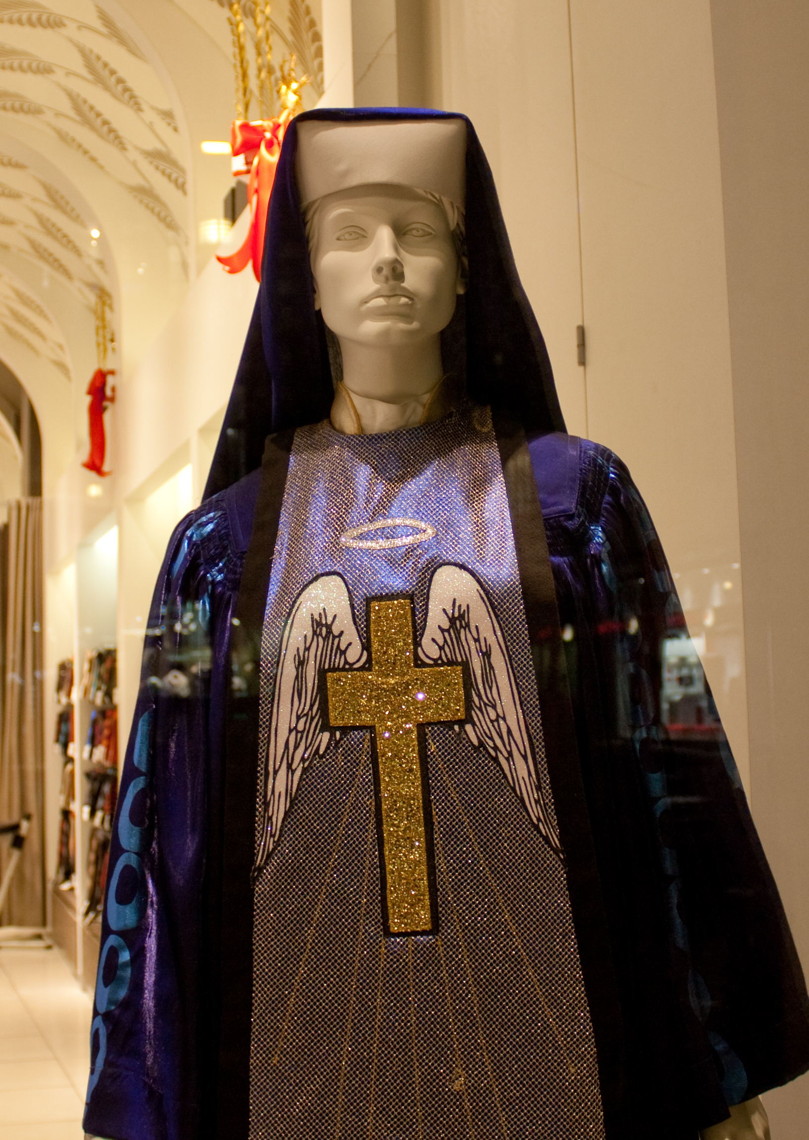 High above Boylston Street, this Angelic face watches the masses of people below.