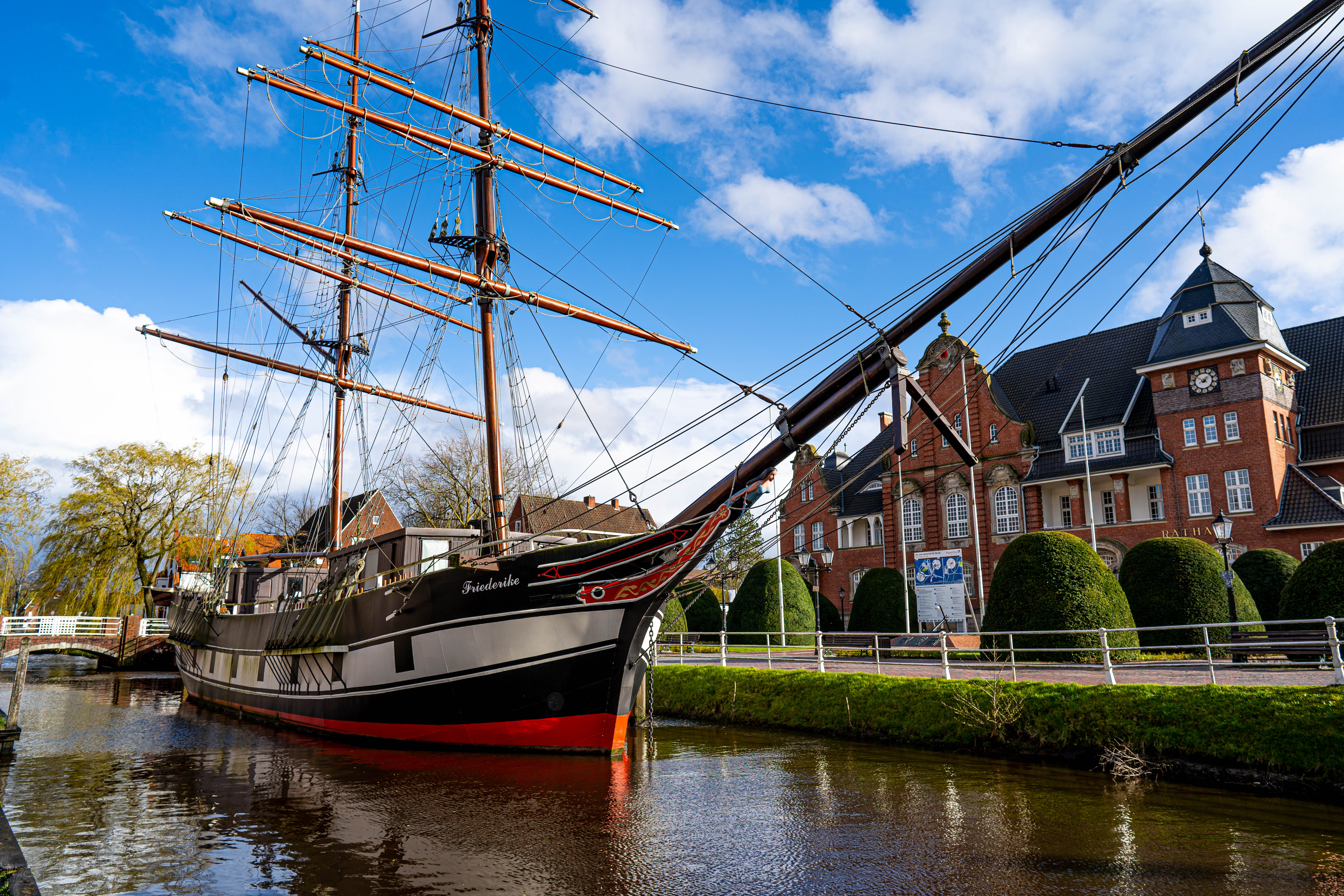 One of six sailing ship replicas on display in the canals of Papenburg, The Freiderike is situated outside the Rathaus. These stand as a symbol of the area’s rich shipbuilding tradition.