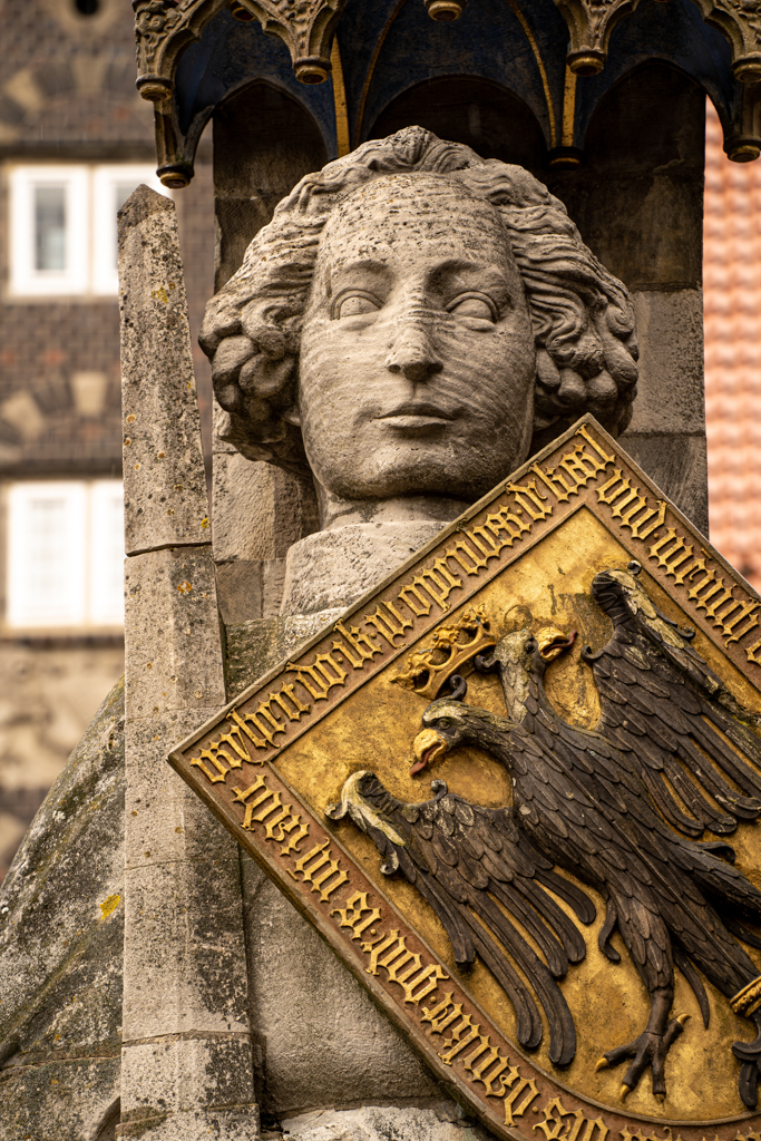 The Flemish Renaissance building features the Bremen Merchants’s coats of arms and the Holy Roman Imperial Eagle.