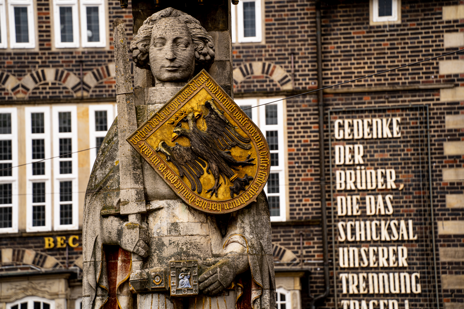 Bremen is an amalgam of the old and the new. The historic square or Marktplatz features a huge statue of the Knight Roland, which symbolizes the rights and priviledges of the Hanseatic City. Hanseatic refers to a medieval merchant’s guild. Roland was a protector of the trade group.