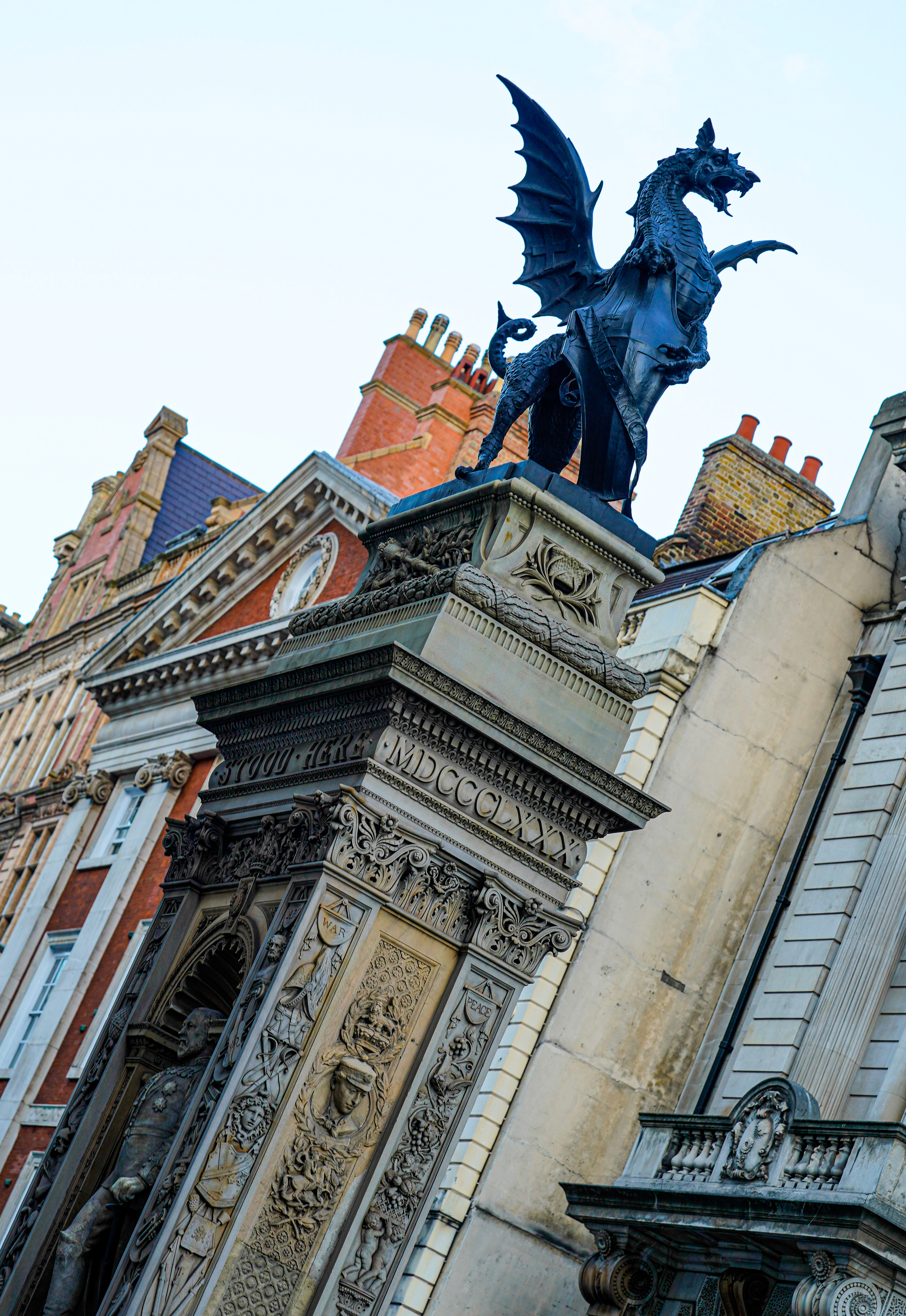 You must believe that the city of London is protected by Dragons. In fact, there are 13 Dragons marking the boundary of the city. There used to be a building called the Coal Exchange built in 1849. Adorning the building were 2 seven foot tall Dragons. In the late 1960’s the Coal Exchange was demolished, but the Dragons live on. The 2 Dragons were mounted on plinths on either side of Victoria Embankment to mark the boundary between Westminster and London.